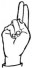 На ћирилици написано САНДРА БАДРИЋ састоји се из 12 слова [?]. Исписано ћириличном једноручном азбуком за глувонеме: